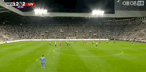 第57分钟,扳回一城!吉马良斯力压凯尔凯兹头球破门,纽卡1-2利物浦