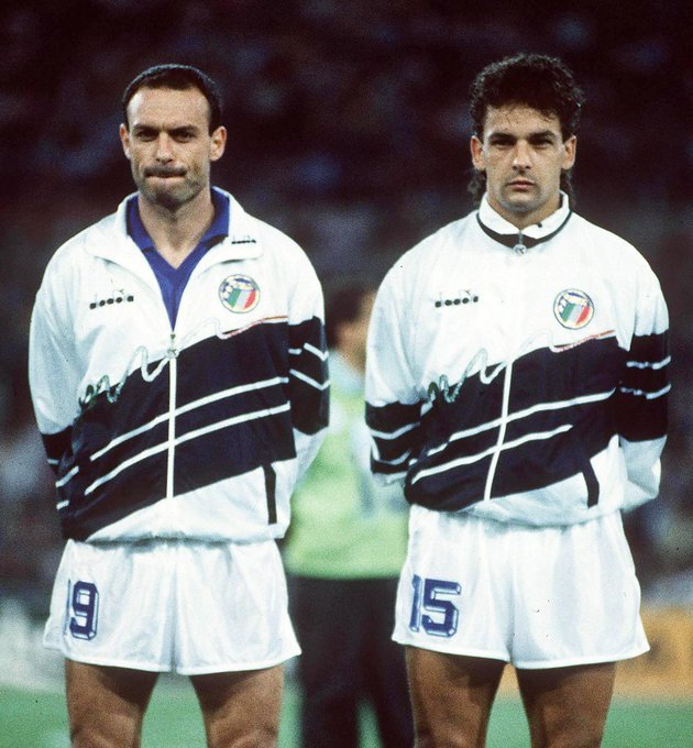 【老照片】 #世界杯# Salvatore Schillaci and Roberto Baggio.🇮🇹#意大利国家队#